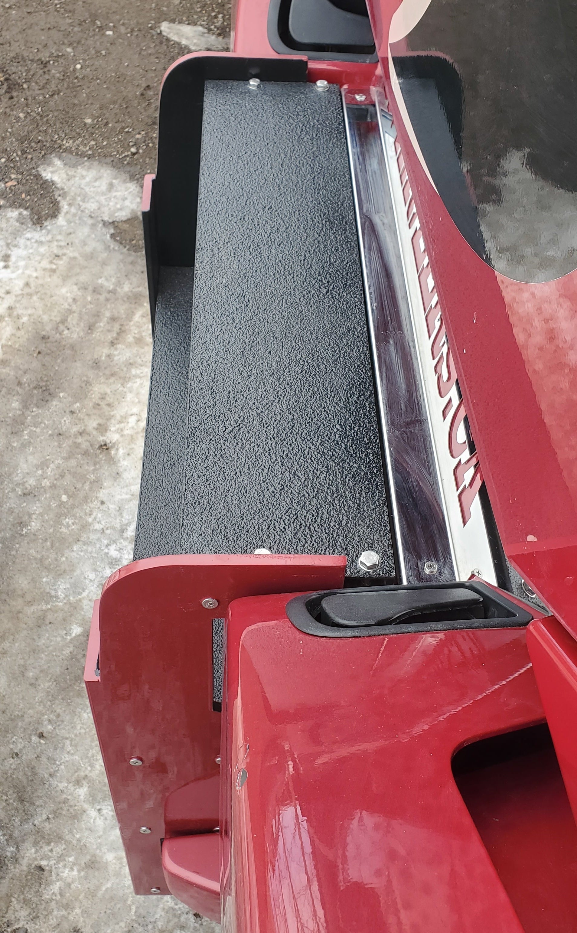 PAINTING - The CANStep can be painted any color! Do It Yourself! The surface first needs to be scuffed with a red Scotch Brite Pad, primed, and then painted. Optionally we also recommend applying paint-matched bed liner for a very durable surface. The gritted step tread surface SHOULD NOT be painted. Only the vertical sides, and front edged of the step treads should be painted or bedlined.